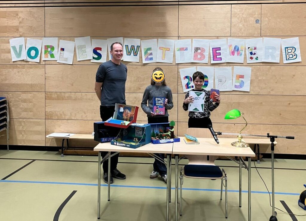 Mit seiner eindrucksvollen Lesung aus den Romanen "Best Bro Ever" und "Feuerwanzen lügen nicht" begeisterte er die Jury. Besonders überzeugend waren sein sicheres, lebendiges Vortragen und die spürbare Freude an Literatur – ein Auftritt, der allen in Erinnerung bleiben wird. Als Schulsieger wird Janosch unsere Schule im Februar beim Regionalentscheid vertreten. Dafür wünschen wir ihm viel Erfolg und drücken fest die Daumen!