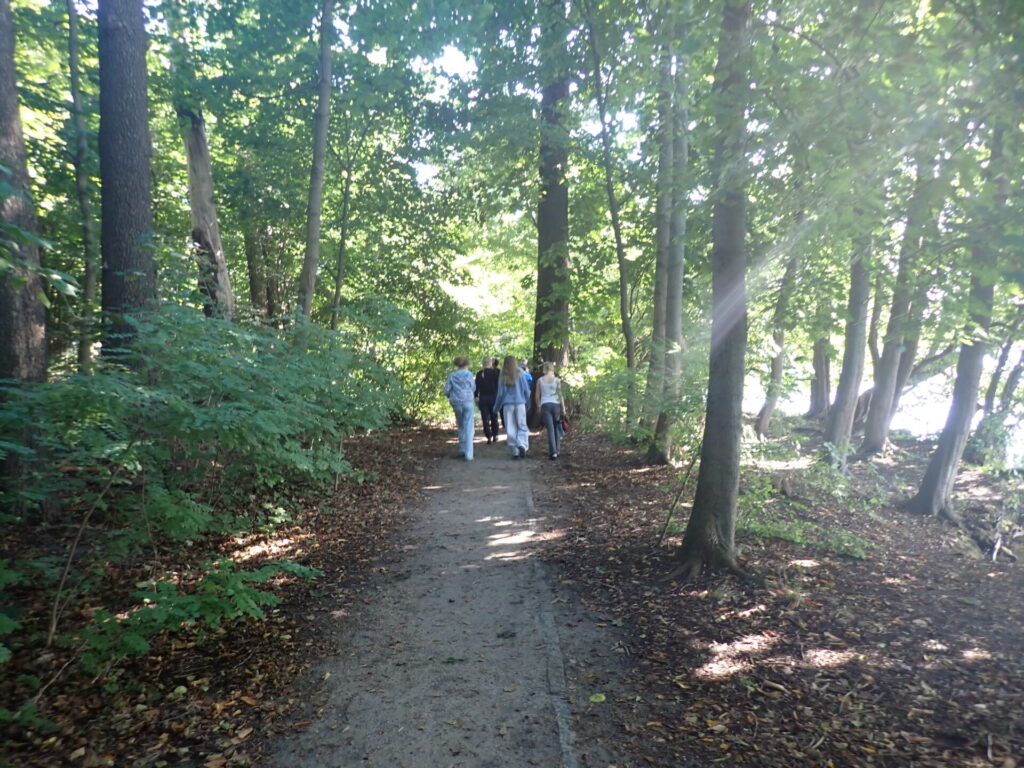 Am nächsten Tag wanderten wir nach dem Frühstück zum Strand neben dem Jugenddorf. Dort spielten wir Volleyball und Wikingerschach, gingen mit den Füßen ins Wasser und sammelten Muscheln.