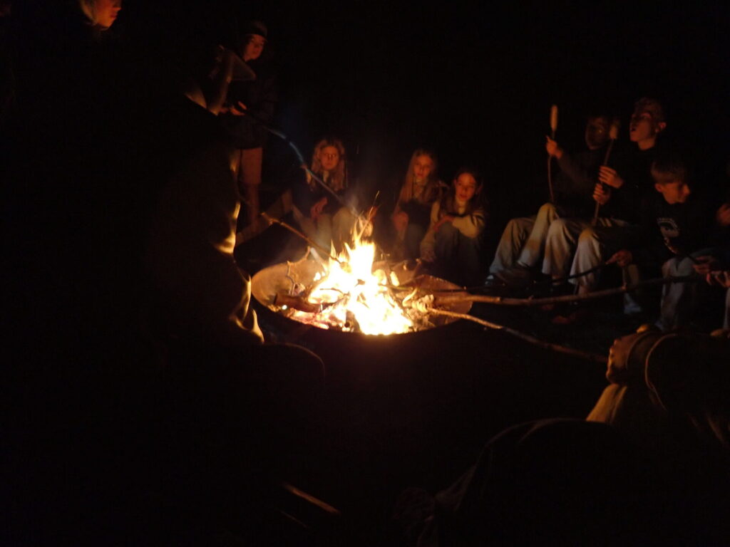 Dann erkundeten wir das Gelände. Es gab eine große Wiese mit einer Feuerstelle in der Mitte. Das Lagerfeuer war ein Highlight, bei dem wir “Die Werwölfe von Düsterwald” spielten - es war einfach großartig!